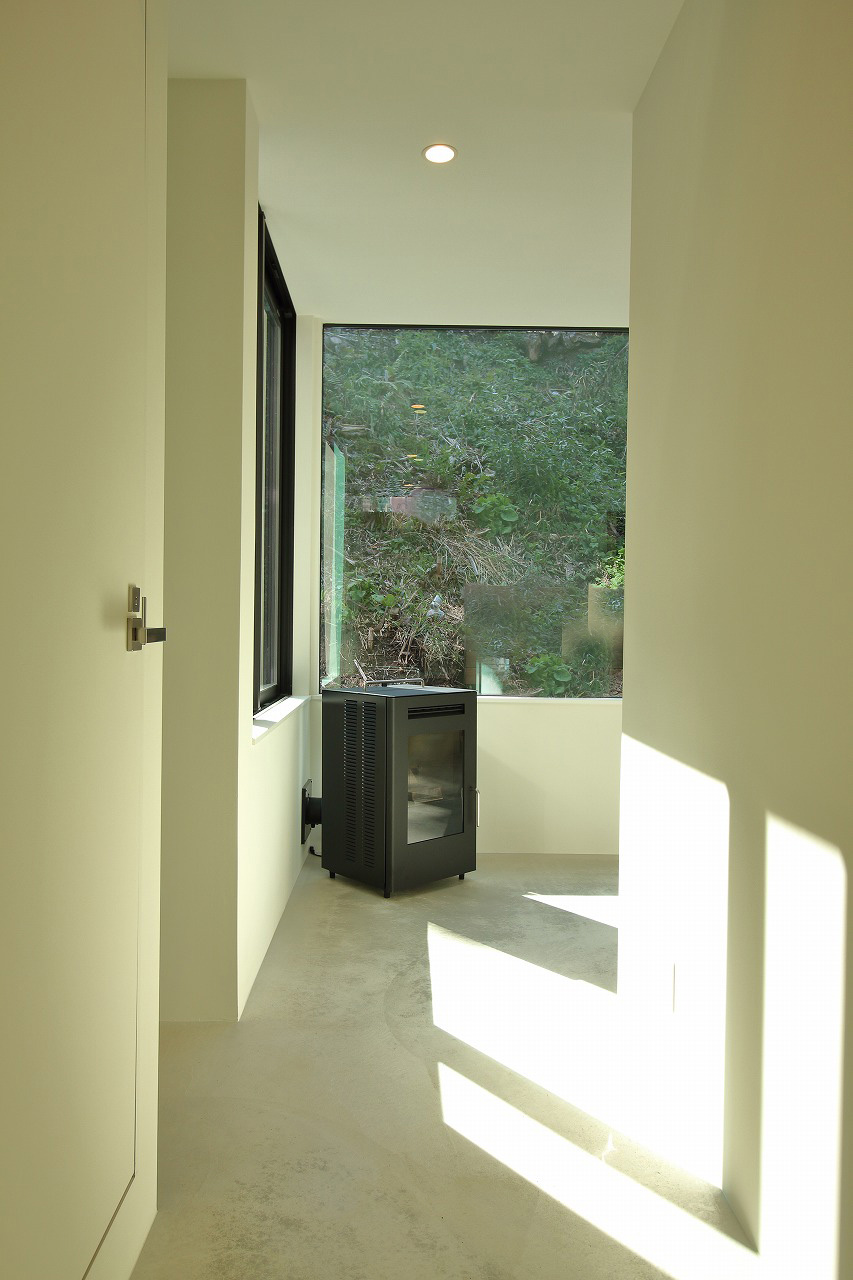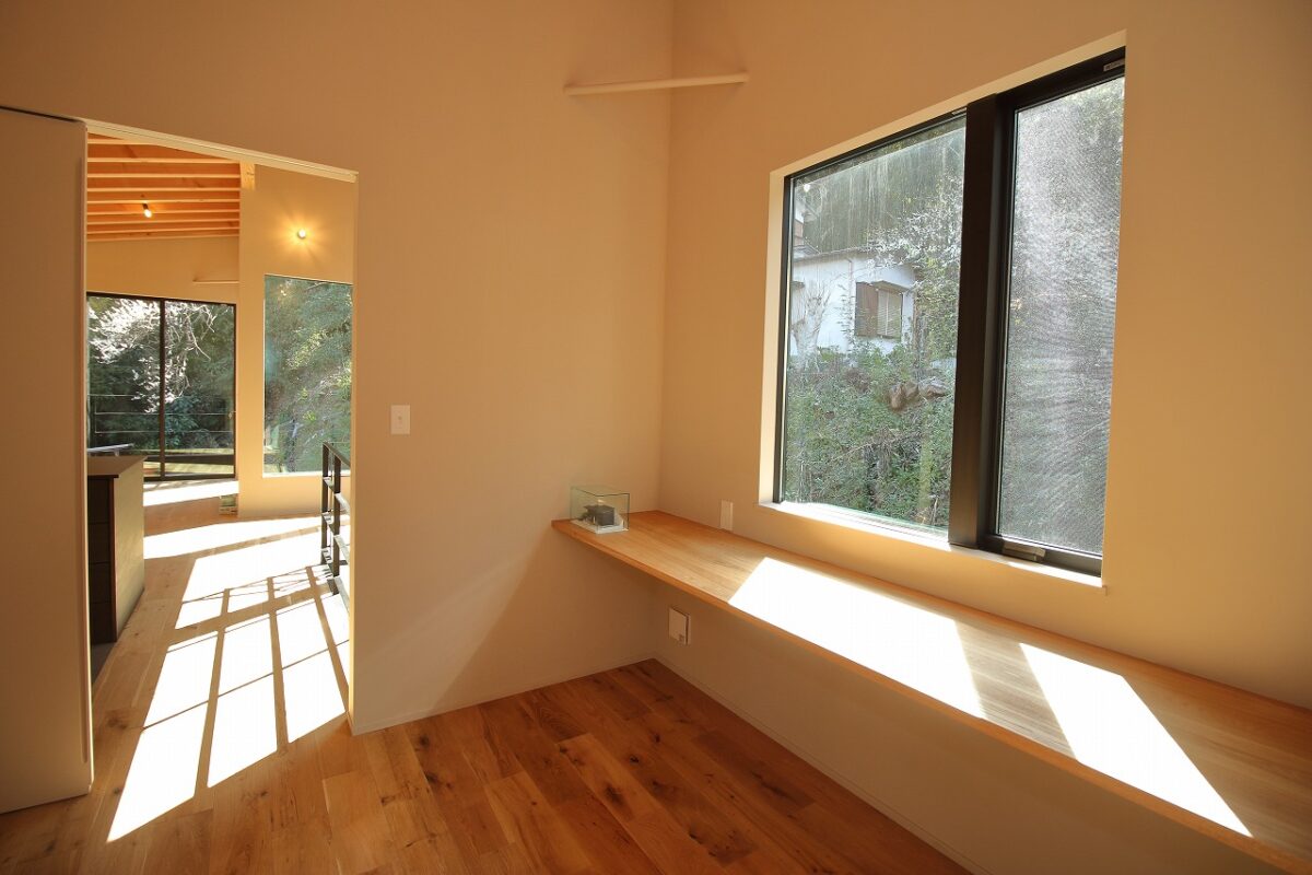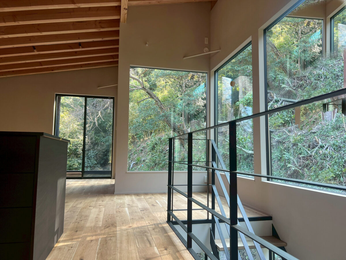 室内は、山の緑が見えるように山側にできる限り窓をとって、
