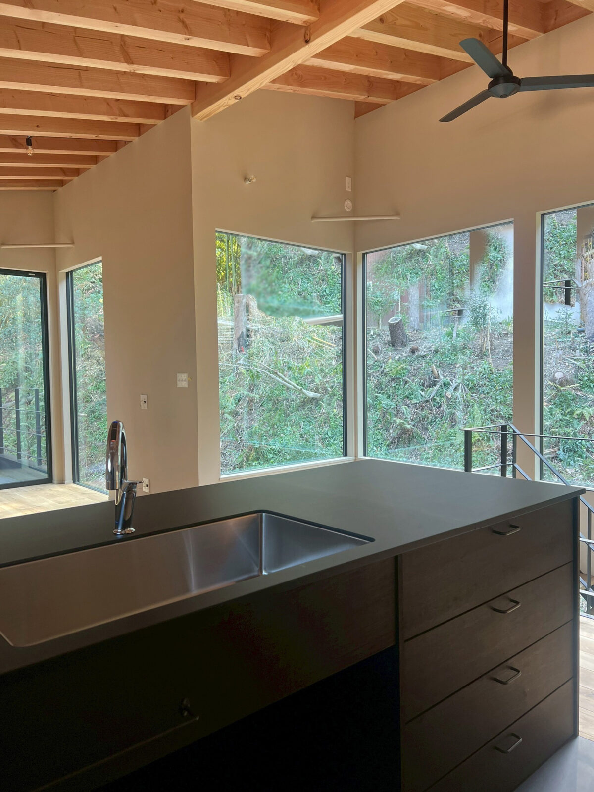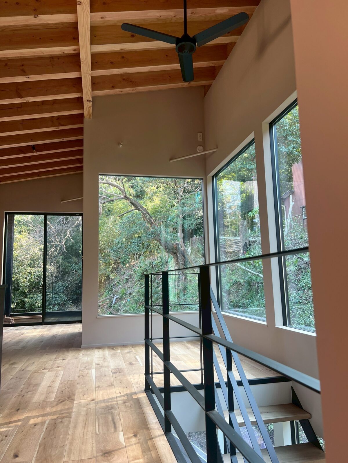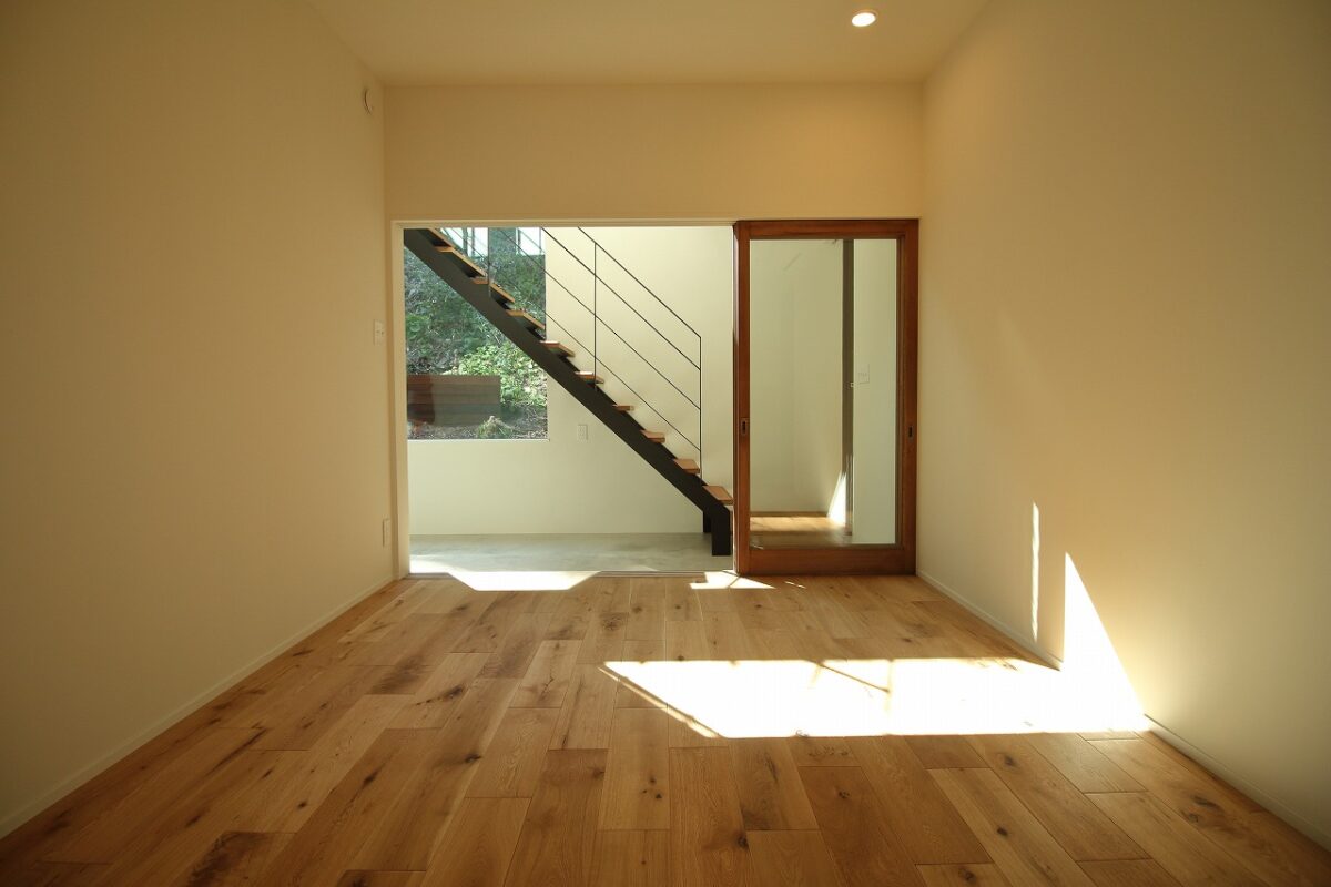 室内は、山の緑が見えるように山側にできる限り窓をとって、